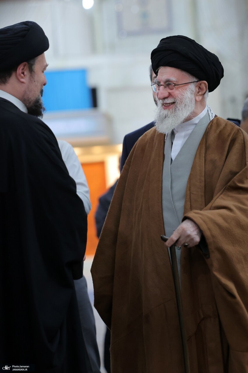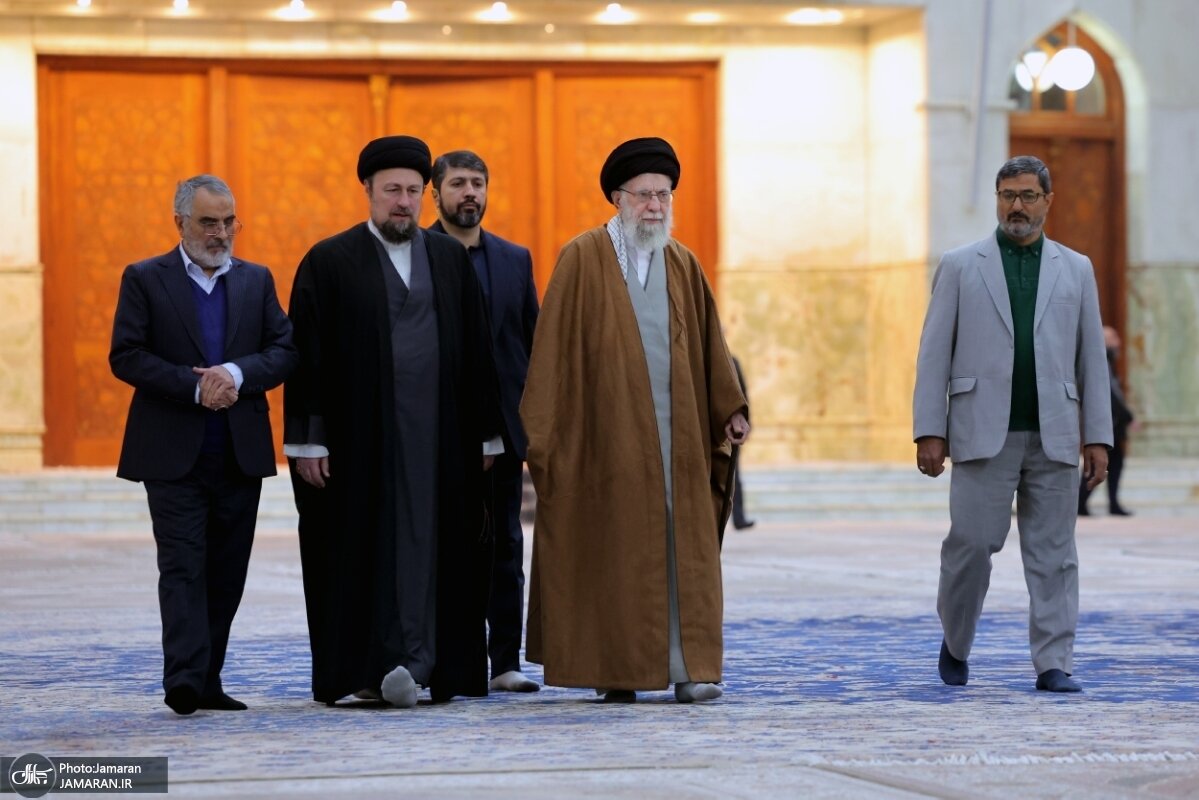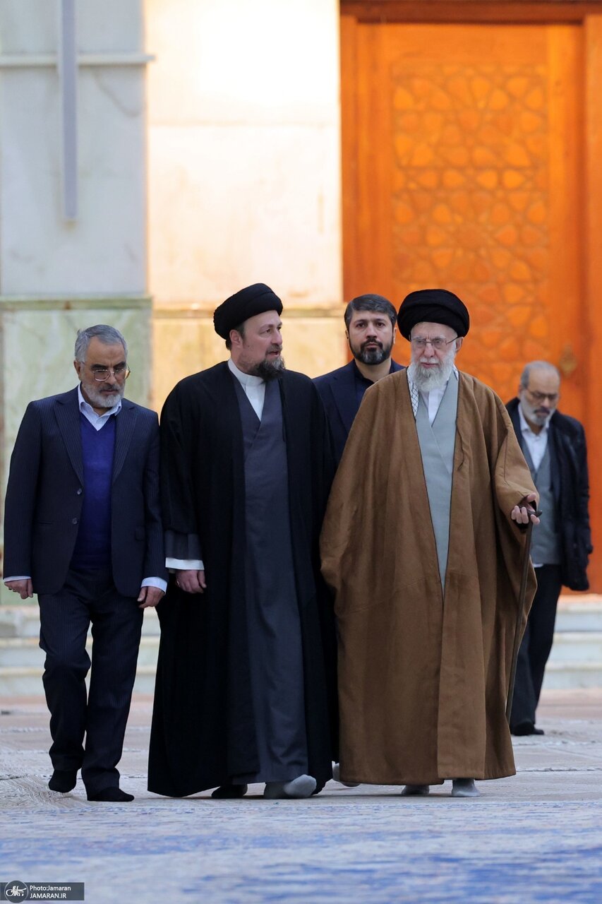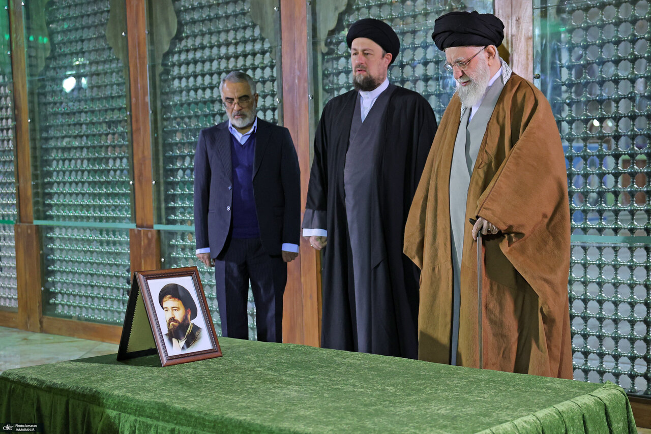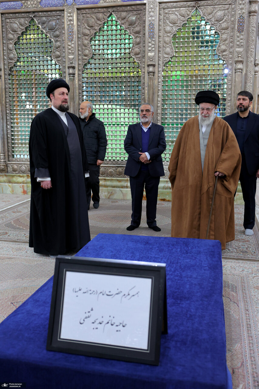 تصاویر خاص از رهبر انقلاب و سیدحسن خمینی/ فاتحه خوانی بر سر مزار همسر امام خمینی و فرزندشان