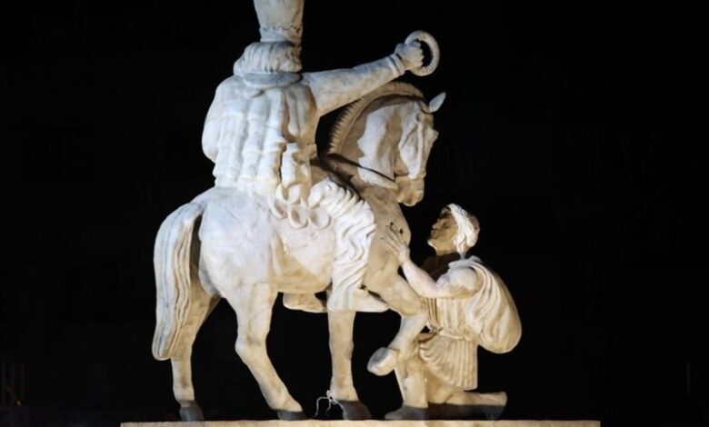 مجسمه «زانوزنندگان برابر ایران» نمادی از اقتدار، همبستگی و هویت ملی در میدان انقلاب رونمایی شد.